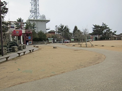 | 神社横の三角点から掬星台の展望台へ。雪が降ってきました |
