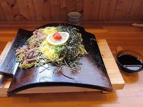角島を出て左に日本海を眺めながら青海島経由で萩市へむかいます。立ち寄った青海島の突端を目指したが、特にこれといった見所もなくUターン。遊覧船乗り場近くの店で昼食・・・瓦ソバです(下関市の名物?)。近くの金子みすゞ記念館を見学。 |