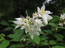 | ヤブウツギ、モチツツジ、そして黄色と白色の二色の混じった花の先には中善寺の鳥居(かっての神仏習合を引き継いでます)。 |