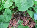 ウマノアシガタ、ウツギ、立派になりそうなサルノコシカケなどを見ながら中ノ郷へ到着。向こうの双耳峰が高越山です。 |
