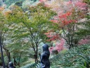 | 下社の紅葉はだいぶ進んだようです。ここからの湘南そして相模湾の展望ですが、生憎の曇天で明瞭ではないものの江ノ島も見えます。 |