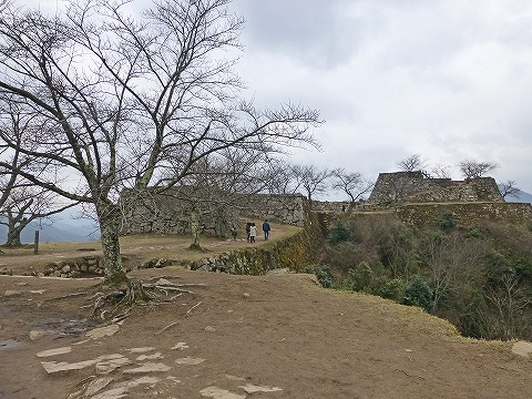 | 城跡の展望。雲海に浮かぶ城跡は残念ながら秋から冬。展望台は1~3番とあります。 |