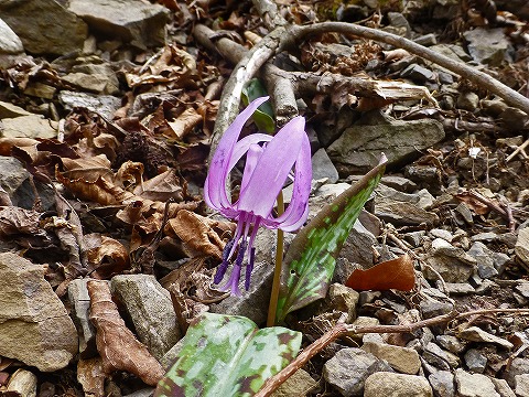 | 大岩(1)を沢におり大岩(2)へと移動。その沢でカタクリが咲いていました。 |