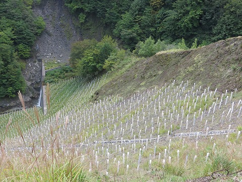 山腹補修後の植林 |
