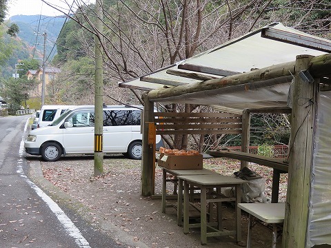 | 下の方の登山口にある無人販売所ではミカン一袋を百円でおいてあります。 |