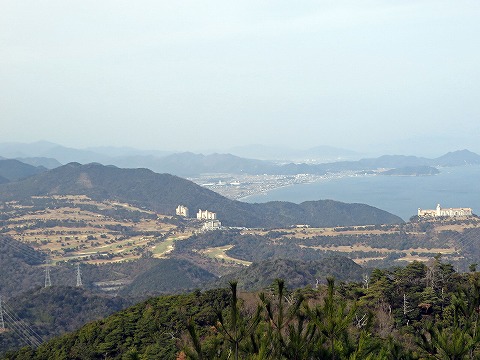 | 山頂を通過して北側の稜線をたどると、77号鉄塔のある展望地に出ます。ここからの北灘、瀬戸内海の展望は素晴らしい。今日は霞んでいましたが、天気が良いと屋島も見えます。