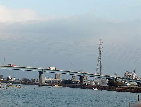 | 榎瀬江湖川から今切川に入ると、今切川河口堰が目の前に迫ってきます。洪水、塩害を防止する河口堰。上流、下流の二つのゲートを船は潜ります。 |