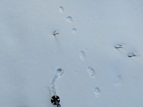 大汗かいて登っていると、なんとネット知人のご夫婦が追いついてこられました。ご夫婦は13、19日にも来られて、腰まで雪があったとか。 |