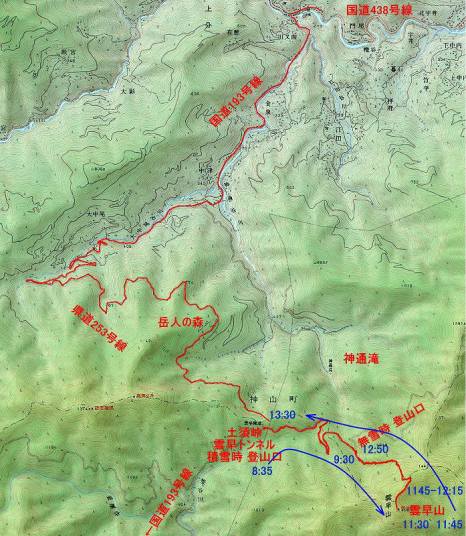 -(スーパー林道)-雲早山 無雪時登山口-パラボラ?分岐(高丸山 分岐)-雲早山