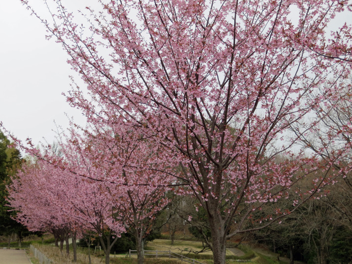 | ソメイヨシノ、蜂須賀桜、河津桜、寒緋桜、寒桜などがあるようです。ソメイヨシノはまだですが、蜂須賀桜、寒緋桜はほぼ満開、 |