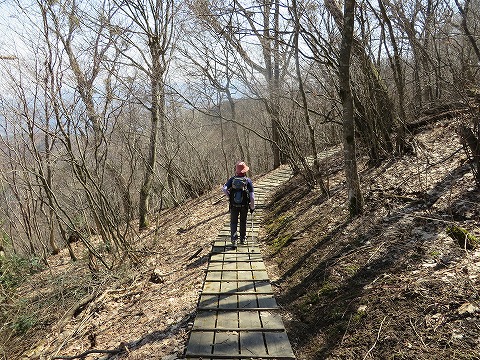 | 展望テラスから引き返し、植物観察路をキャンプ場へ。花はまだなくフキノトウが出てきたところかな。 |