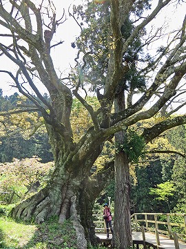つるぎクラブ定番巨樹めぐりツアーで紹介されている29の巨樹を代表する日本一の大エノキだそうです。標高約500mにあって、樹高18m、幹周8.7m。