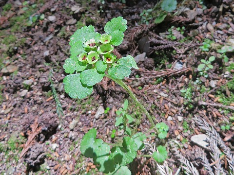 | 山道?作業道?にはたくさんのユキモチソウ。そして育成されているクマガイソウの群生なども見られます。 |
