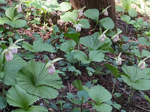 | シャクナゲはピークを過ぎかけていましたが、ユキモチソウ、クマガイソウ、エビネなども見られました。 |
