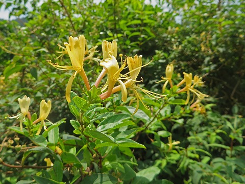 ニワゼキショウの花そして沢山のスイカズラ。 |