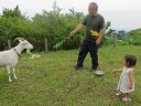テントでミカンその他を購入、預かってもらって山歩きへと出発。 山羊が愛嬌を振りまいている横を通り、放牧中の牛を見ながら登山道へ。いつもの展望台、旭ヶ丸、お文の墓の伝説がある不動峠を経て高鉾山へと向かいます。 |