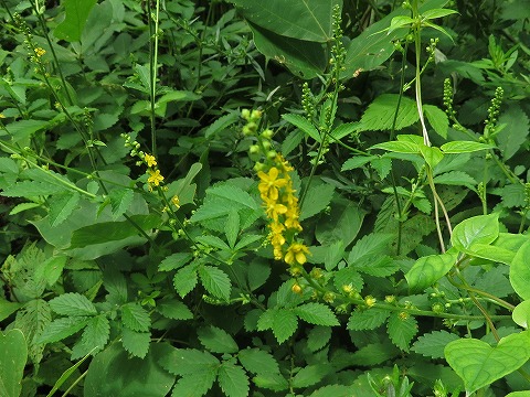 いやしの道分岐にはタマスダレ?、キンミズヒキなど。 |