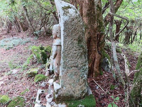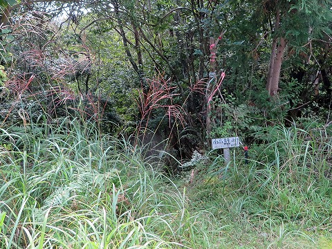 不動像の後側の急斜面を登り高鉾本峰へ。きれいに草刈りされていました。少し先の南高鉾山と書かれた道標から下り林道へ。林道を横切って高鉾山への道があります。今回はパス。 |