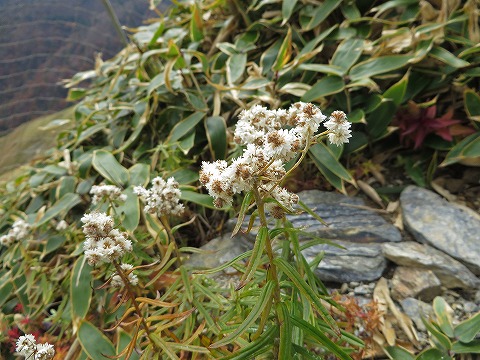 ところで、山頂手前の左側が切れ落ちた狭い登山道。小さな砕石を敷き詰めてあって、足をとられやすい。以前に来たときも緊張しましたが、今回は歳とともに怖くなってきました。怖いとなると、その恐怖感がちょっと悪さをしますよねえ。