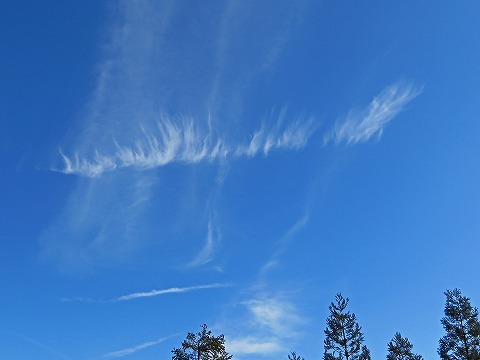 駐車場から見上げた空にきれいなオブジェのような雲。