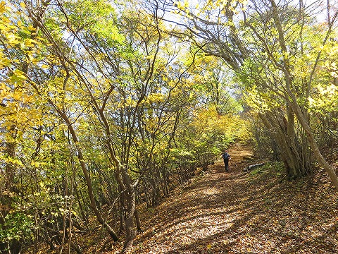 実は、この山域でもそろそろ紅葉を楽しめるかなと期待してましたが、標高700mより下はまだこれからでしょうか。それに大川山はかなり山頂近くまで植林で展望もきかないですね。 |