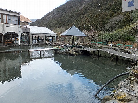 広々とした庭には釣り堀、滝、釣り橋などがあります。そして川魚料理を楽しめる食事処と宿泊もできるホテルになっているようです。 |