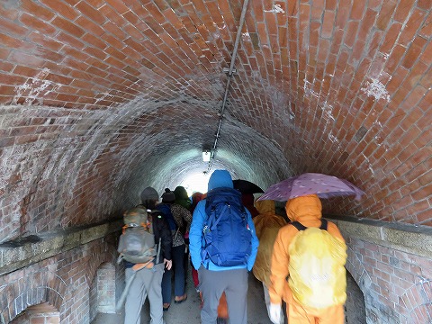 蹴上インクラインの下を抜けるレンガ造りの歩行者専用トンネルからスタートです。出入口には第三代京都府知事による「雄観奇想」の額が架かっています。