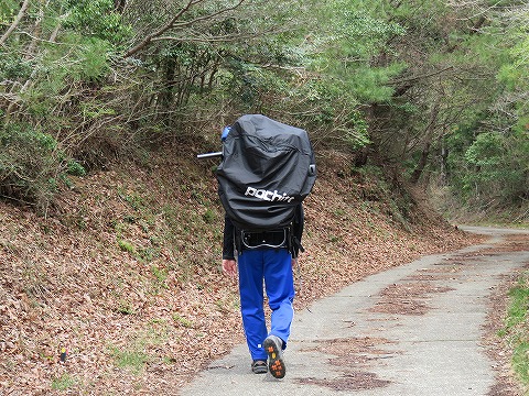 基地を回り込んだところで、10Kg超えの自転車を担がれた男性に出会う。 |