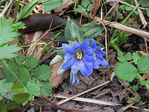 下山はいやしの道、そして沢コース。ハルリンドウがあちらこちらで花を咲かせています。