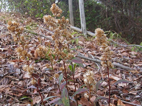 なんとアキノキリンソウが咲いていました。残り花というにはあまりにも時季外れではないかな。