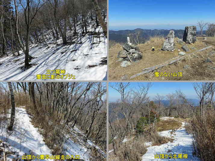雪の季節は雪庇が盛大にできる北斜面も積雪は残っているが、アイゼンなしでも問題なし。