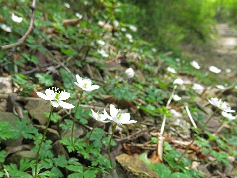 ヤマシャクヤクの群生地からの登り返し、ニリンソウが群生。 |
