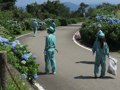 アジサイ祭に備えて大勢のボランティアが集合。 |