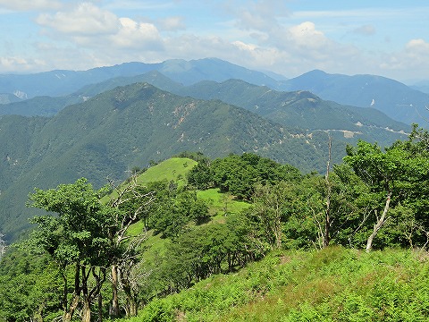 下界の猛暑(前日は室内で35℃ほど、いやあ暑い)も標高1000mを超えれば多少は涼しいかなと剣山スーパー林道から標高1630mほどの高城山へ。