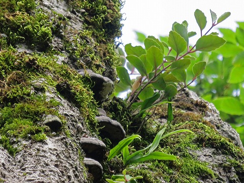 ここで来た道を引き返す。戻る途中の尾根に大きなヒメシャラ?ナツツバキ?の木が沢山あった。(花が大きいし、ヒメシャラではなくナツツバキでしょうか)。